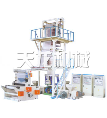 三層塑料共擠吹塑復(fù)合膜機組是我廠根據(jù)市場 需要而研制的,在設(shè)計結(jié)構(gòu)上吸收了國內(nèi)外同類產(chǎn) 品先進水平。它用平擠上吹法可連續(xù)吹制折幅寬度為800/1500 毫米,厚度為0.08毫米的各種LDPE、HDPE、 LLDPE、MLLDPE、Pa包裝膜。這種膜由于其阻隔性 好、保濕、防濕、防雨、防風(fēng)、防霜凍、隔氧、耐 油,因此可廣泛用于輕重包裝,如各種鮮果、肉食 品、醬菜、鮮牛奶,液體飲料等。